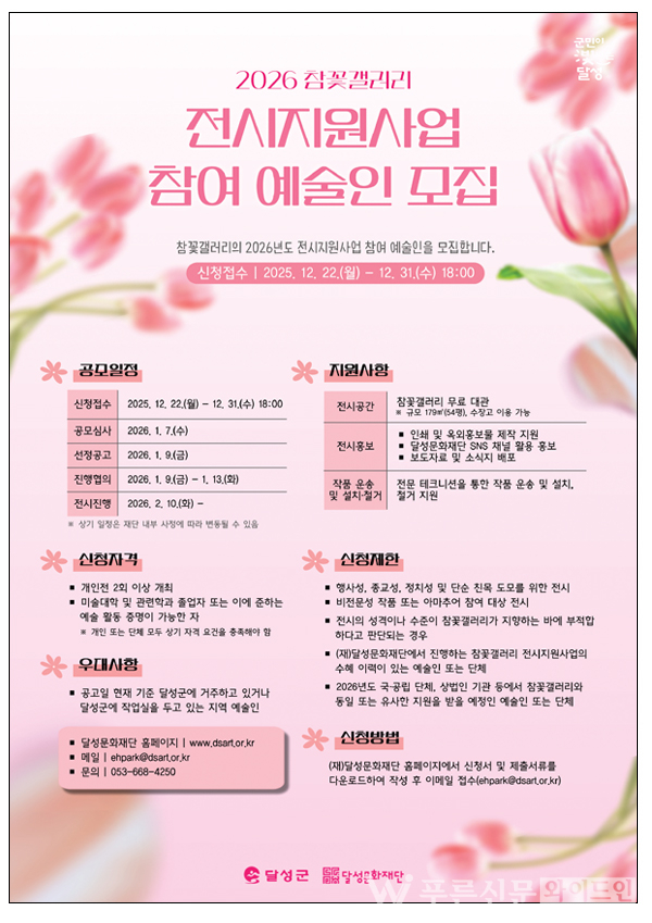 자세한 내용은 달성문화도시 홈페이지(www.dalseongpedia.or.kr) 또는 달성문화도시센터 문화도시 사업 팀(☎053-668-4263)을 통해 확인할 수 있다.