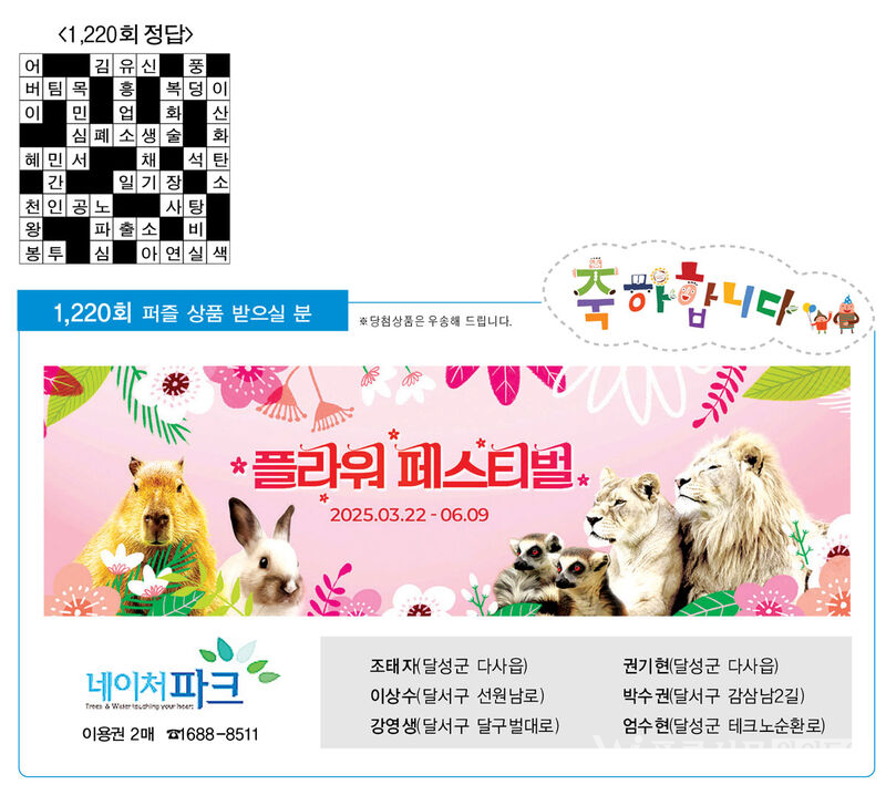 ◑ ‘가족과 함께 풀어보세요’ 낱말퍼즐을 만들어 푸른신문으로 보내주세요. 채택된 분께는 작은 선물을 우송해 드립니다.