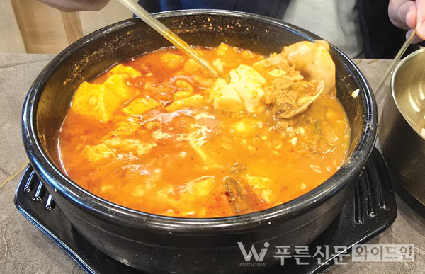대구 성서 신당동, 초여름을 재촉하는 비가 연일 내리며 습하고 쌀쌀한 날씨가 이어지고 있다. 이런 날씨엔 체온을 유지하고 면역력을 챙길 수 있는 따뜻하고 영양가 높은 식사가 절실하다. 이런 조건을 만족시키는 곳이 바로 성서 주공1단지 맞은편, 달구벌대로에 자리 잡은 ‘완뚝순두부’다.