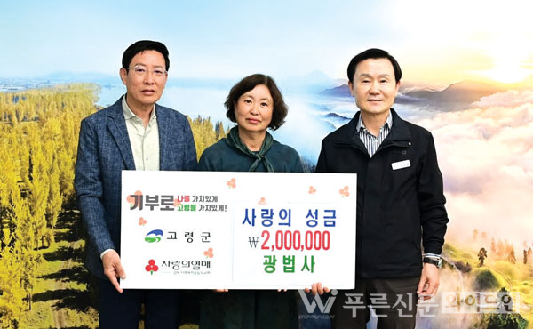 광법사(주지스님 김현화)에서 지난 13일(화) 고령군청을 방문해 어려운 이웃들을 위해 사랑의 성금 200만 원을 기탁했다.