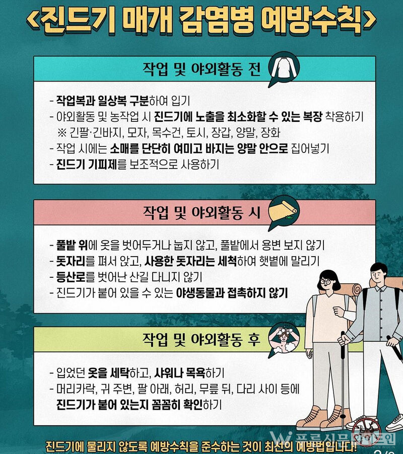 • 야외활동 시 진드기 물림 주의, 예방수칙 준수가 중요