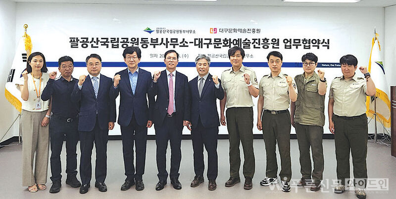 대구문화예술진흥원과 팔공산국립공원동부사무소가 지난달 28일(수) 업무협약을 맺고, 팔공산을 문화예술 관광자원으로 활용하기 위한 협력에 나섰다.