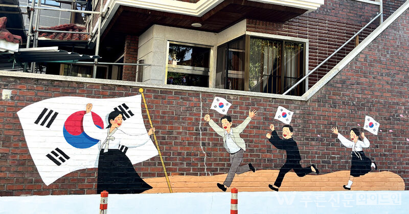 골목길 벽면에 그려진 삼일절 기념 벽화가 애국정신을 되새기게 하고 있다.
