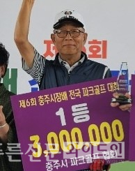 남자 우승자 김덕돈 선수. 〔사진=충주시파크골프협회〕