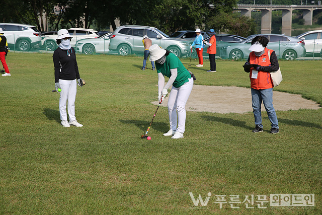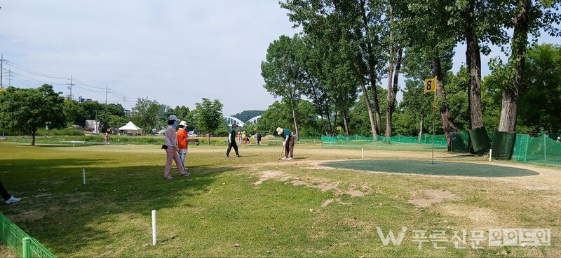 충주시 생활체육 파크골프대회에서 동호인들이 운동을 하고 있다. 〔사진=충주시파크골프협회〕