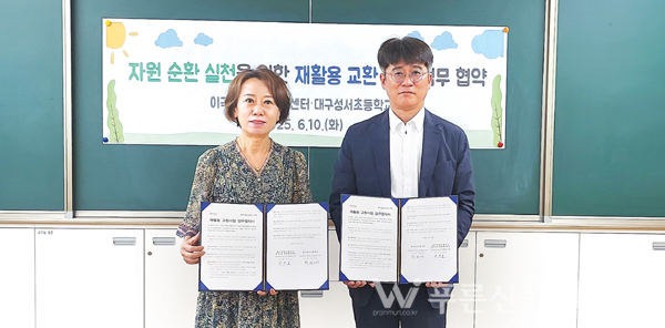 달서구 이곡1동은 성서초등학교와 ‘재활용품 교환사업’ 업무협약을 체결하고, 6월부터 학생 200여 명이 우유팩과 폐건전지 수거에 참여한다.