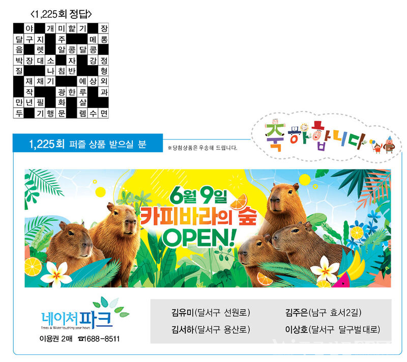 ♣ ‘가족과 함께 풀어보세요’정답을 아시는 분은 본사 편집부로 보내주시기 바랍니다. 7월 8일(화)까지 도착된 엽서 중에서 추첨을 통해 상품을 드립니다. 주소를 정확히 기재해 주십시오. 당첨상품을 우송해 드립니다.