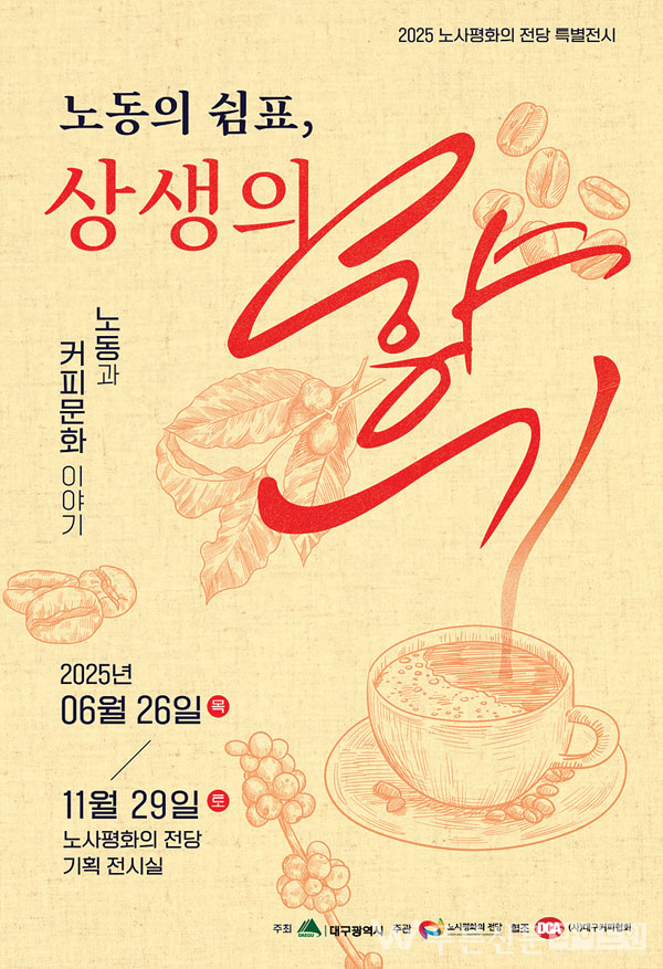 노사평화의 전당이 2025년 기획 전시의 일환으로 ‘노동의 쉼표, 상생의 향기’를 주제로 한 특별 전시 ‘노동과 커피문화 이야기’ 를 오는 11월 29일(토)까지 개최한다.