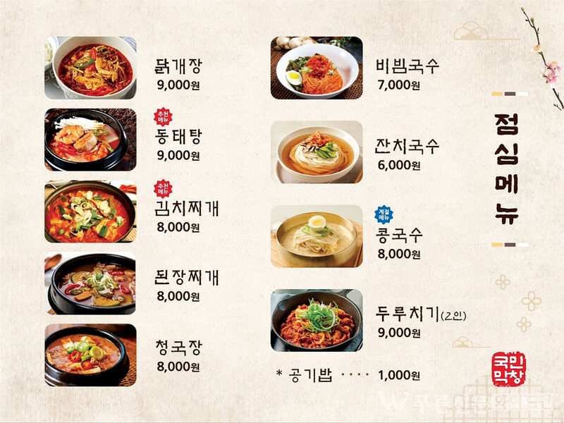 이름만 들어도 ‘국민들이 찾을 만한 식당’이라는 평을 받는 이곳은 두루치기, 김치찌개, 삼겹살 등 익숙한 메뉴를 내세우면서도 고기의 두께와 밑반찬 푸짐함으로 차별화를 꾀하고 있다.