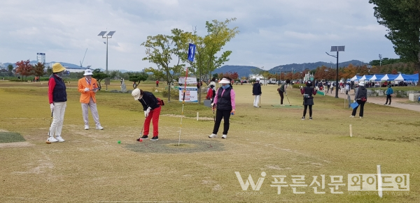▲작년 제3회 구미배 전국 파크골프대회 경기 장면. 〔사진=김영조 기자〕