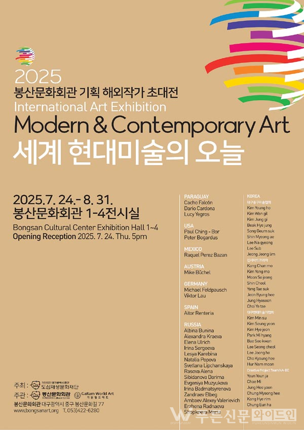 2025 해외작가 초대展 ‘세계 현대미술의 오늘’이라는 제목으로 열리는 이번 전시는 총 8개국 작가들의 작품을 통해 전 세계 현대미술의 흐름과 감각을 한자리에서 만나볼 수 있는 기회를 제공한다.