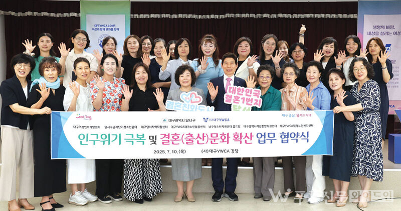 달서구는 지난 10일(목) (사)대구YWCA(회장 김연희) 및 산하기관 7곳과 초저출생 인구위기 극복과 결혼문화 확산을 위한 업무협약을 체결했다.