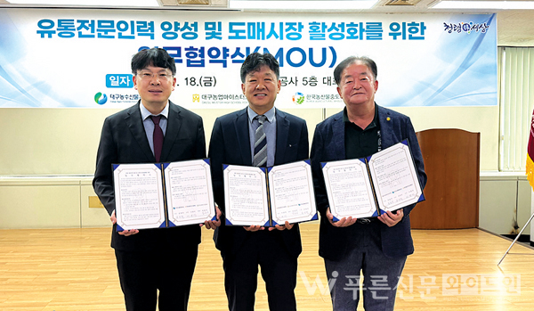 대구농수산물유통관리공사는 대구농업마이스터고, 한국농산물중도매인조합 대구연합회와 도매시장 청년 유통 전문인력 양성 업무협약을 체결했다.