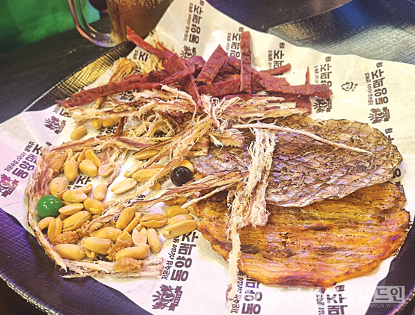 이곳은 안주 하나하나에도 정성이 가득하다. 보통 맥주 하면 생각나는 얼큰한 오뎅탕, 육포, 쥐포, 오징어포 같은 기본 안주를 넘어, 불향이 살아있는 오징어채까지 제공하는 디테일에서 진정한 맛집의 면모가 드러난다.
