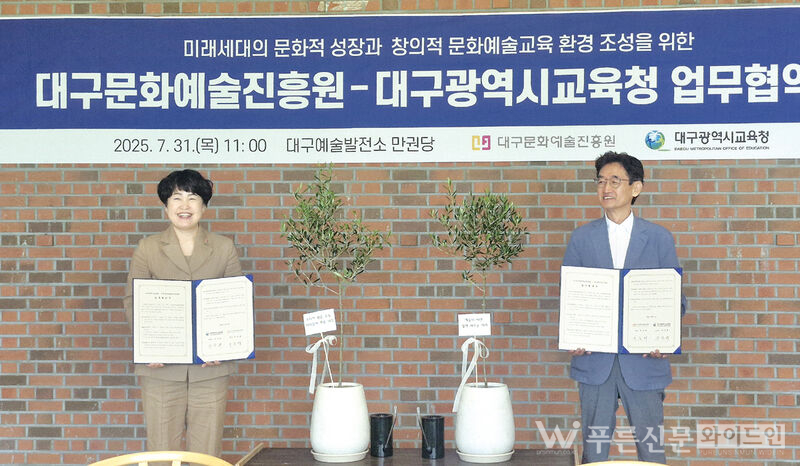 대구시교육청은 지난달 31일(목) 대구예술발전소 만권당에서 대구문화예술진흥원과 영유아 문화예술교육 활성화를 위한 업무 협약을 체결했다.
