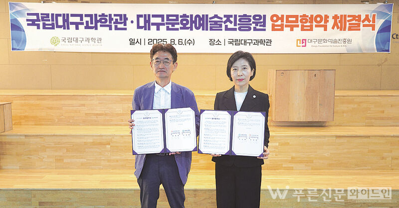 대구문화예술진흥원과 국립대구과학관은 지난 6일(수) 업무협약(MOU)을 체결, 지역사회 과학 문화 확산과 문화예술 진흥을 위한 협력 체계를 구축했다.