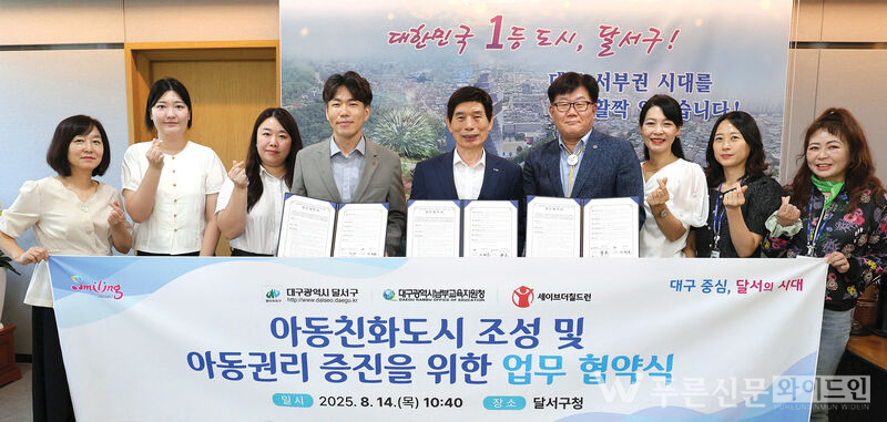 대구남부교육지원청은 지난 14일(목) 달서구청, 세이브더칠드런과 함께 학생맞춤통합지원 및 아동친화도시 조성을 위한 업무협약을 체결했다.