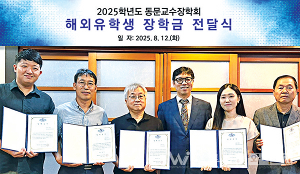 계명대학교 동문교수장학회(회장 이재호)는 지난 12일(화) 해외 대학원 재학생들에게 장학증서를 수여했다.