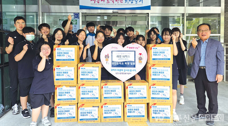 상인중 ‘더하기’ 동아리, 이웃 위해 라면 기부 [자료제공=상인중학교]