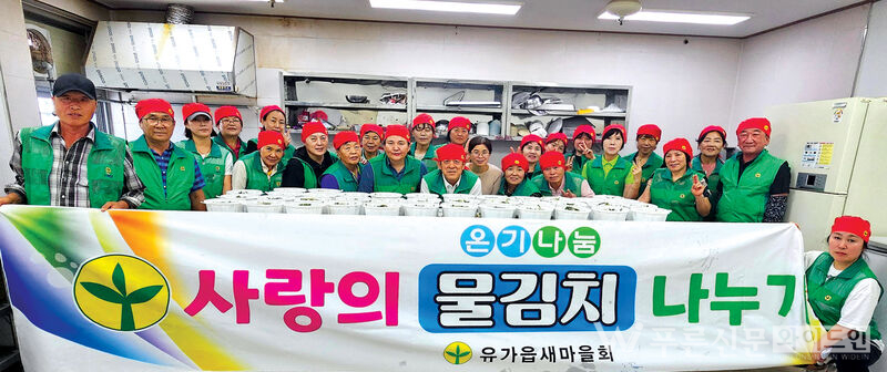 유가읍 새마을협의회·부녀회는 회원 20여 명이 참여해 직접 담근 물김치를 관내 경로당 35곳에 전달했다.