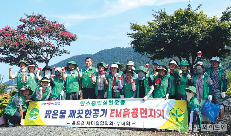 옥포읍 새마을협의회·부녀회 회원 30여 명이 송해공원에서 유용미생물(EM) 흙공 1,500개를 던지며 환경정화 활동을 펼쳤다.