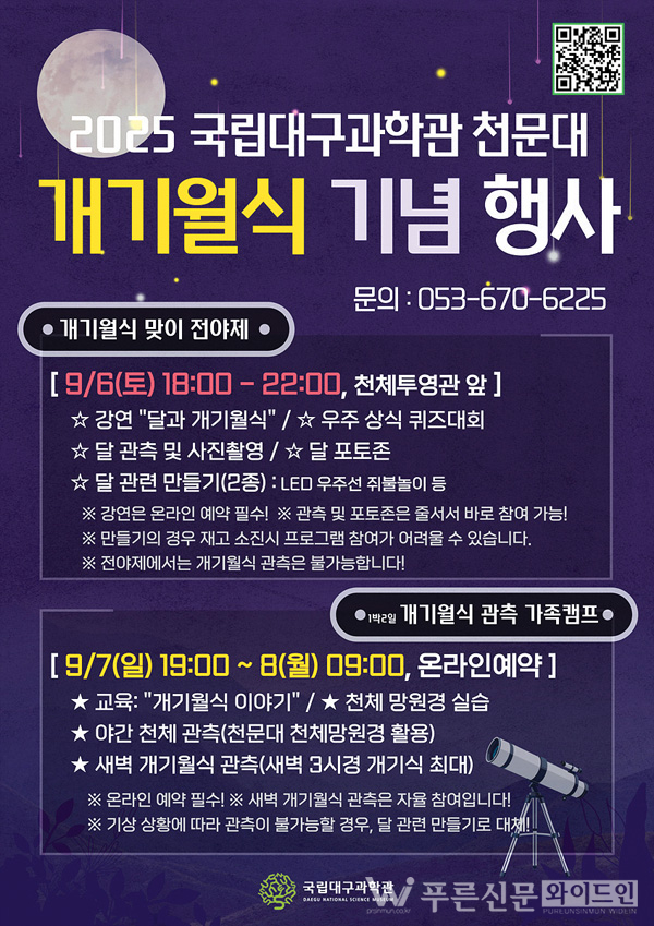 국립대구과학관은 9월 6일(토)~8일(월)까지 3년 만에 찾아오는 ‘2025년 개기월식 기념 행사’를 개최한다.