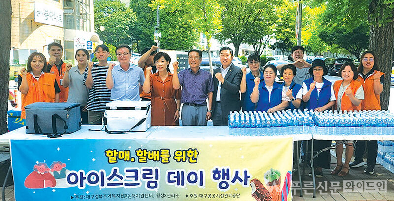 대구공공시설관리공단, 어르신에 폭염대응키트 제공 [자료제공= 대구공공시설공단]대구공공시설관리공단은 지난달 27일(수) 주택관리공단 대구경북지사와 함께 월성주공2단지에서 어르신 500여 명에게 폭염대응키트와 아이스크림을 전달했다.
