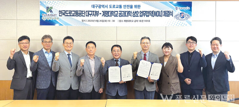 계명대학교 공과대학과 한국도로교통공단 대구지부는 지난달 26일(화) 교통안전 강화를 위한 업무협약을 체결했다.