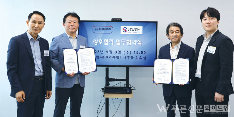삼일병원(병원장 김지건)은 지난 3일(수) 1,500여 명의 회원으로 구성된 포럼·분권과 통합(이사장 채장수)과 업무협약(MOU)을 체결했다.