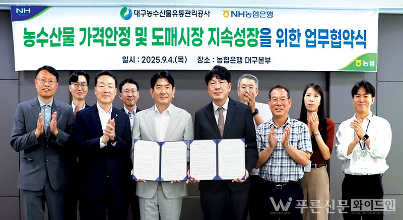 대구농수산물유통관리공사-NH농협은행, 거래 투명성 강화 업무협약 체결대구농수산물유통관리공사(사장 김상덕)는 지난 4일(목) NH농협은행 대구본부와 농수산물 가격 안정과 도매시장 성장 지원을 위한 업무협약을 체결했다.