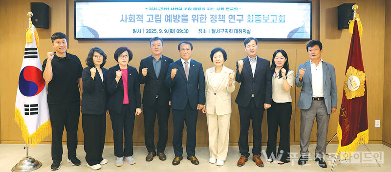 사회적 고립 예방 정책 연구회 최종보고회 [자료제공=달서구의회]달서구의회는 지난 9일(화) ‘사회적 고립 예방을 위한 정책 연구회’ 최종보고회를 열고, 지역 맞춤형 고립 예방 전략과 지원 방안을 공유했다.