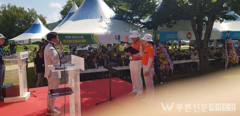 ▲선수대표가 페어플레이 정신으로 정정당당하게 경기에 임할 것을 선서하고 있다. 〔사진=김영조 기자〕