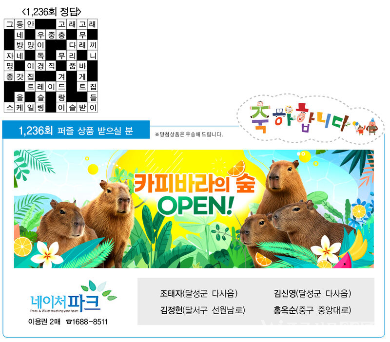 ◑ ‘가족과 함께 풀어보세요’ 낱말퍼즐을 만들어 푸른신문으로 보내주세요. 채택된 분께는 작은 선물을 우송해 드립니다.