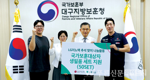 대구지방보훈청과 LG이노텍 노동조합 구미지부는 지난 10일(수) 추석을 맞아 보훈가족에게 500만 원 상당의 생필품을 전달했다.