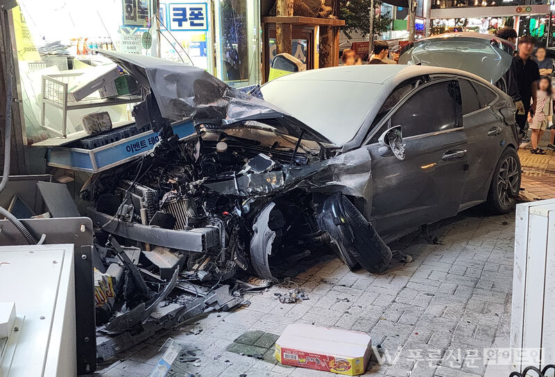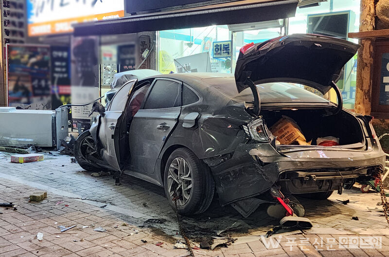 차량이 다중추돌 후 편의점 벽을 들이받았다 [사진=푸른신문와이드인]
