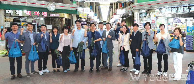 의원 및 직원 20여 명이 참여해 제수용품과 지역 농산물을 구매하며 전통시장 살리기에 힘을 보탰다.