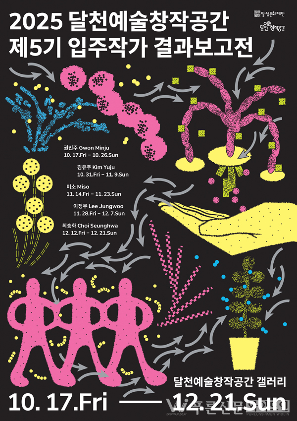 달성문화재단 달천예술창작공간에서 10월 17일(금)~12월 21일(일)까지 순차적으로 ‘2025 달천예술창작공간 제5기 입주작가 결과보고전’을 개최한다.