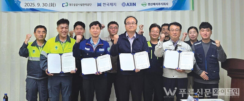 대구공공시설관리공단 달성사업소는 지난달 30일(화) 지역 제지업체(한국, 아진, 경산)와 수질 개선 및 환경보전을 위한 ESG 협력 업무협약을 체결했다.