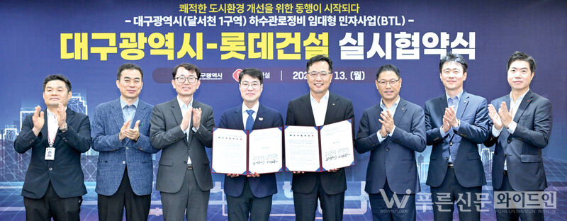 대구시는 지난 13일(월) 롯데건설과 ‘달서천 1구역 하수관로정비 BTL 사업’ 실시협약을 체결했다.