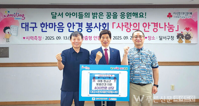 대구한마음안경 봉사회(회장 박재성)는 지난 15일(수) 달서구청과 함께 ‘2025 사랑의 안경나눔’ 행사를 열고 취약계층 학생 40명에게 맞춤형 안경을 지원했다.