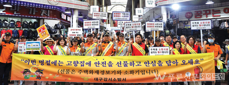 달서구 이곡2동(동장 박성준)은 성서 와룡시장 일대에서 50여 명과 함께 추석을 맞아 화재예방과 ‘주택용 소방시설 선물하기’, 복지사각지대 발굴 캠페인을 실시했다.