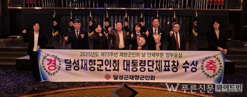한편, 달성군재향군인회는 이번 수상을 계기로 지역민과 함께하는 ‘생활 속 안보단체’로서의 위상을 더욱 굳건히 하고, 평화롭고 안전한 지역사회 구현을 위한 다양한 활동을 지속해 나갈 계획이다.