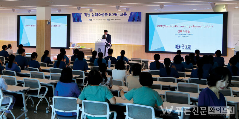 구병원, 전 직원 대상 심폐소생술(CPR) 교육 실시 [자료제공=구병원]구병원(병원장 구자일)은 지난 21일(화) 별관 8층 어셈블리홀에서 응급의학과장을 초빙해 전 직원을 대상으로 심폐소생술(CPR) 교육을 실시했다.