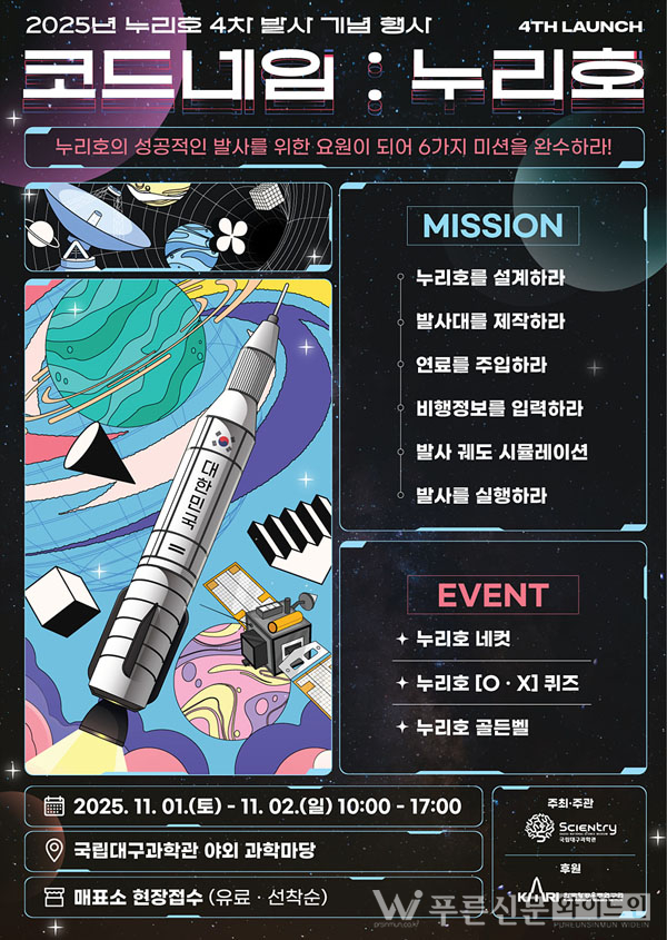 이번 행사는 온 가족이 즐길 수 있는 놀이형 과학문화 체험 프로그램으로 구성되며, 11월 1일(토)~2일(일)까지 ‘코드네임: 누리호’라는 주제로 진행된다.