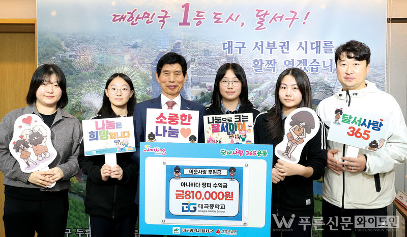 대곡중학교 학생들이 교내 아나바다 행사 수익금 81만 원을 어려운 이웃을 위해 달서구에 기탁했다.