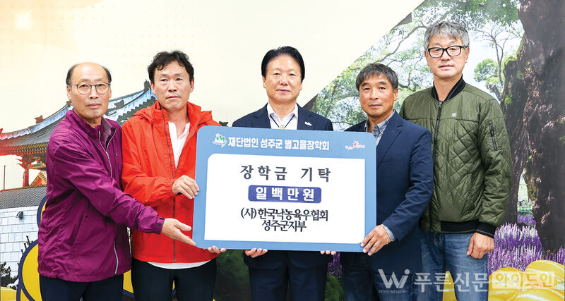 한국낙농육우협회 성주지부(회장 권상문)는 지난 23일(목) 지역인재 양성을 위해 100만 원의 장학금을 성주군별고을장학회에 기탁했다.