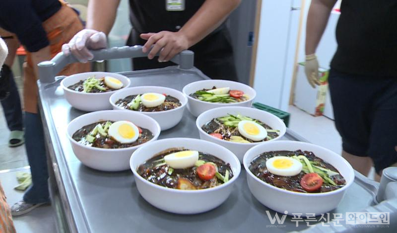 조리실은 자장면을 준비하는 봉사자들로 활기가 넘쳤다. 삶은 면 위에 춘장을 얹고 고명을 올려 완성한 한 그릇의 점심은 금세 어르신들의 얼굴에 미소를 번지게 했다.