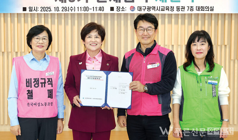 대구시교육청은 지난달 29일(수) 대구학교비정규직연대회의와 ‘제3기 단체협약’을 체결했다.