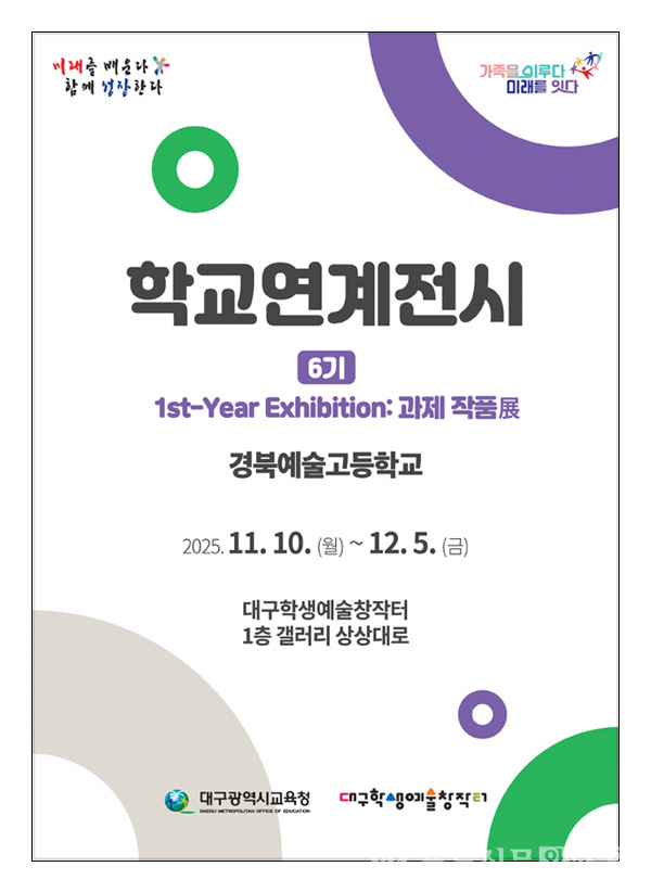 대구시교육청 산하 대구학생예술창작터는 12월 5일(금)까지 1층 갤러리 상상대로에서 학교연계전시 6기 ‘1st-Year Exhibition: 과제 작품展’을 개최한다.