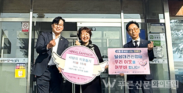달성대건신협(이사장 박재순)은 지난 5일(수) 현풍읍 행정복지센터에 저소득 주민을 위해 이불 18채를 기탁했다. 박 이사장은 “작은 정성을 모아 나눔을 실천했다.”고 전했다.